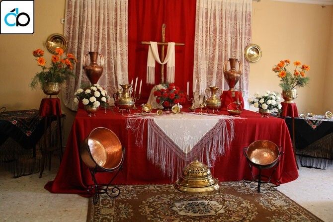 Su decoración la han realizado con un gusto exquisito, en la que no falta de nada: mantones, encajes, flores, objetos de bronce y cofre… convirtiendo la sede de la asociación en un espacio idóneo para levantar un hermoso monumento a la Cruz.