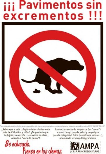 Para ello esta Ampa ha editado un cartel y una pegatina. En dicho cartel se recuerda que ya existe una normativa municipal que sanciona con multas que van desde los 301 a las 1.500 euros la no recogida de cualquier tipo de excremento de animales en la vía pública (BOP 78, 25-04-13). Esta Ampa recuerda al Ayuntamiento de Montijo la conveniencia de dar a conocer públicamente dicha norma y la obligatoriedad de cumplirla, así como invita a asociaciones y particulares a sumarse a esta campaña, para lo cual permite la libre copia y reproducción sin ánimos lucrativos del cartel, cuyo fichero se adjunta, sin necesidad de citar la fuente, todo ello en beneficio de un pueblo más limpio y más sano.