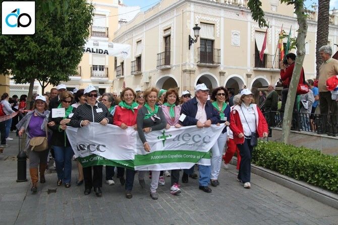 Tras la última prueba se dio salida a la marcha a pie que recorrió el circuito establecido por las calles y plazas de Montijo, encabezada por una pancarta de la aecc, que portaban componentes y voluntarias de la Junta Local. Marcha que fue seguida por cerca de seiscientas personas. Varias casas comerciales colaboraron con regalos que fueron sorteados entre los asistentes.