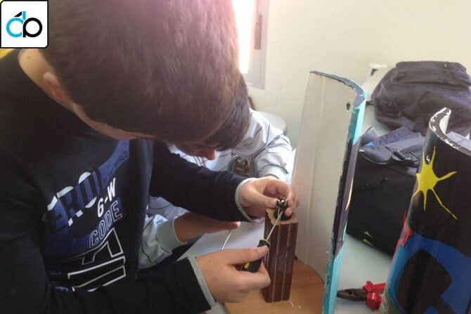 El trabajo empezó haciendo tres taladros en la parte inferior o dos en la superior de la teja y dar una mano de pintura al agua de color blanco, para que refleje mejor la luz.