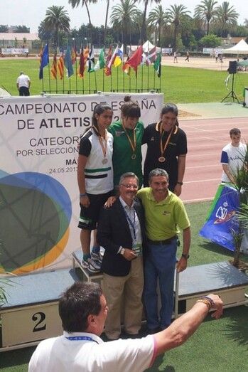 El sábado 25 de Mayo, en la ciudad de Málaga, se ha celebrado el campeonato de España Cadete de Selecciones Autonómicas, donde han participado más de 35 atletas representando a Extremadura. Entre los componentes de la selección, de Montijo del Club de Atletas, dos lanzadores de Martillo que iban con la ilusión de conseguir buenas marcas que le dieran opciones a subir al pódium. El primero en participar, a las nueve de la mañana, Jorge Gómez Rodríguez. Partía esta temporada con una marca personal con martillo de 4 kilos, en su primer año de cadete de 50´74 metros y que lo colocaba entre los 6 mejores de España. Ya desde el primer intento se vio que Jorge quería demostrar que estaba en forma y que iba a darlo todo en la competición. Y así fue, después de los 6 lanzamientos reglamentarios hizo volar el martillo a 55,60 metros, lo que suponía marca personal de la temporada y le daba la muy merecida medalla de plata. El oro fue para Alberto González Moyano, de Jaén que consiguió el campeonato con un mejor lanzamiento de 59,17 metros y el bronce para el lanzador de Cataluña con una marca de 53,56 metros, ambos del año 1998, un año mayor que Jorge.