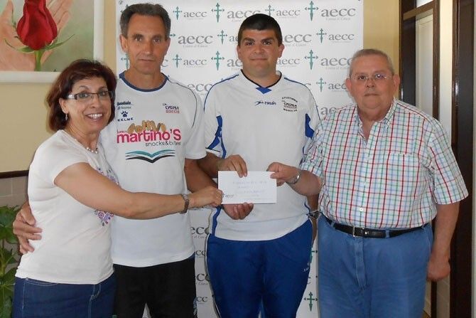 Joaquín Carretero y Antonio Fuentes, presidente y entrenador del Club Atletismo Montijo, entregaron, en la tarde de ayer, 2.340,85 euros (dos mil trescientos cuarenta euros con ochenta y cinco céntimos), resultado económico de la I Carrera contra el Cáncer en Montijo (carrera y marcha a pie). Importe que fue recibido en la sede de la Junta Local de la aecc, por Manuel García Cienfuegos y Mariana Rodríguez Cabañas.