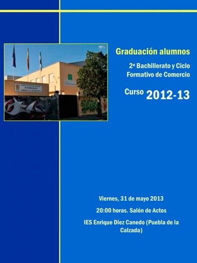 El viernes 31 de mayo tendrá lugar en el IES Diez Canedo de Puebla de la Calzada la tradicional ceremonia de graduación de los alumnos y alumnas de Segundo de Bachillerato y Ciclo Formativo de Comercio.