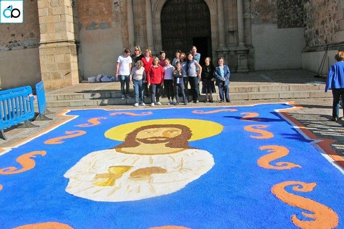 El 2 de junio, festividad del Corpus Cristi, el atrio de la iglesia Parroquial de San Pedro Apóstol de Montijo se ha engalanado con la tradicional alfombra de Sal del Corpus Cristi.