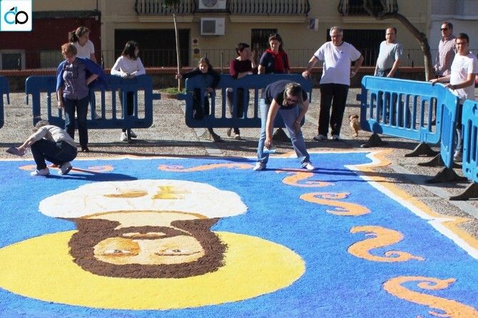 La elaboración de la alfombra ha sido posible gracias a la colaboración del Ayuntamiento, de la Parroquia y a la generosidad y el esfuerzo de los vecinos montijanos.