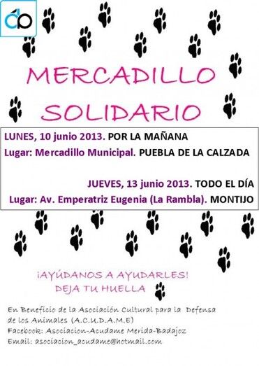 Próximamente la Asociación Cultural para la Defensa de los Animales (A.CU.D.A.ME) realizará dos mercadillos solidarios.