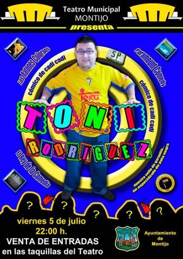 El humorista Toni Rodríguez realizará un espectáculo de monólogos de humor y comedia el viernes 5 de julio a las 22:00 horas en el Teatro Municipal de Montijo.