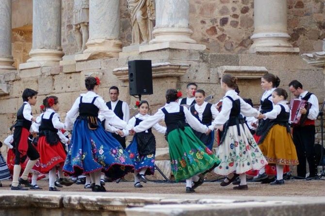 Durante el mes de junio, la Agrupación Cultural Agla ha participado en varios eventos en los que ha dado muestras del trabajo realizado durante este último año. A la tradicional participación de la Escuela de Danza de Agla durante la Velá de San Antonio en la Plaza de España de Montijo se ha unido la actuación en el Teatro Romano de Mérida durante la Clausura del programa de Folklore en la Escuela.