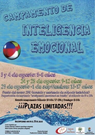 Sym Gabinete de Salud Mental en colaboración con Ayuntamiento de Puebla de la Calzada y Bar Terraza Puebla van a llevar a cabo durante el mes de agosto un Campamento de Inteligencia Emocional para niños en las instalaciones de la piscina de la localidad.