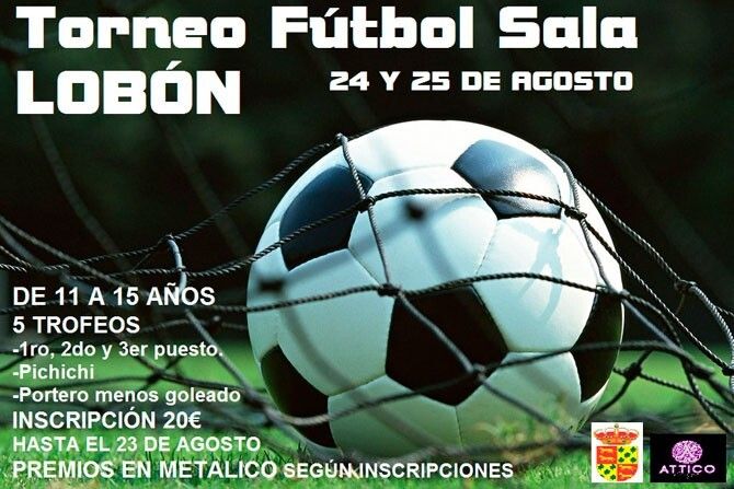 Los días 24 y 25 de agosto, se jugará en Lobón un Torneo de Fútbol Sala para chicos y chicas de entre 11 y 15 años.