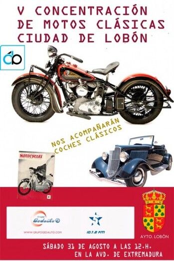 El sábado, 31 de agosto de 2013, en la Avda. de Extremadura, se celebra la V Concentración de Motos Clásicas, Ciudad de Lobón.