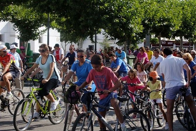 Por un lado, desde las 11:00h., más de trescientas personas (entre adultos y niños) participaron en una marcha en bicicleta que salió de la Plaza Mayor de nuestro pueblo y llegó hasta La Alcazaba. Una travesía en la que no se trataba de competir, sino de compartir un paseo entre vecinos que se convirtió, un años más, en un éxito de convocatoria. Al finalizar la marcha, ya de regreso en Guadiana, se realizó un sorteo de premios entre todos los participantes.