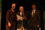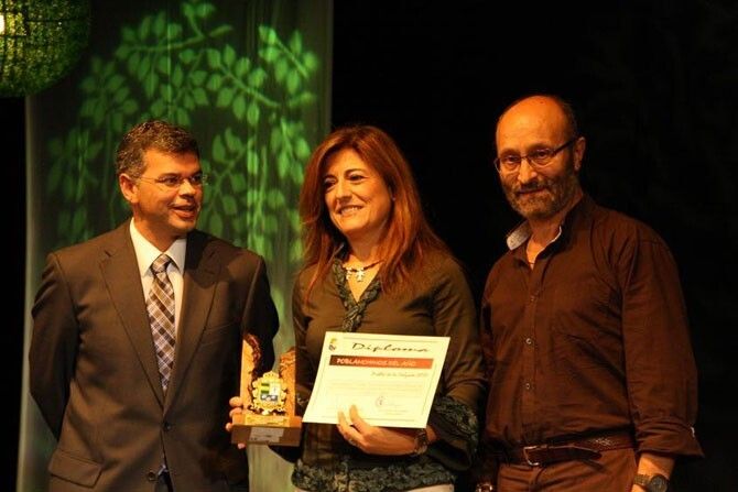 galardón de manos del alcalde de Puebla de la Calzada, Juan Antonio González
