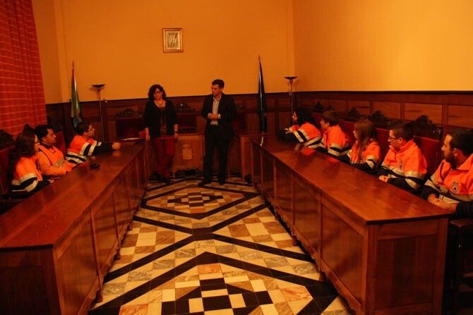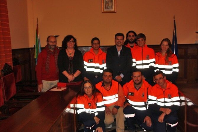 La nueva agrupación de protección civil que acaba de constituirse en Puebla de la Calzada fue recibida en el salón de plenos de la localidad por el alcalde, Juan Antonio González y varios concejales.
