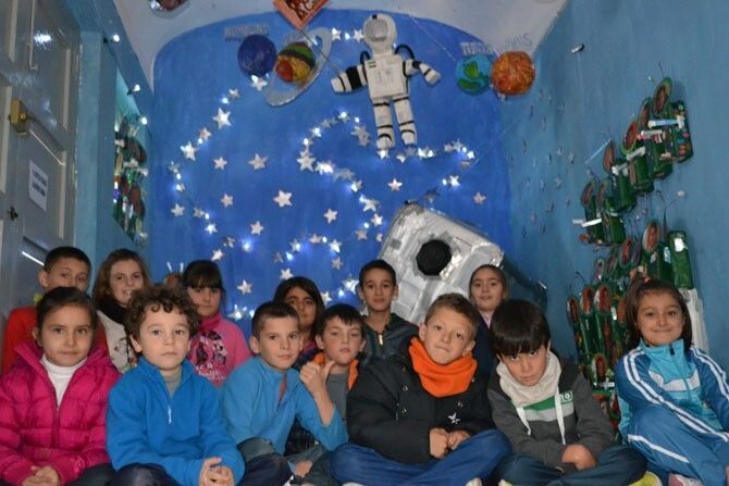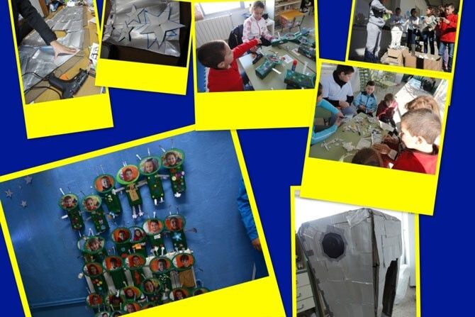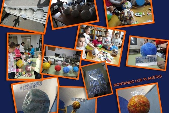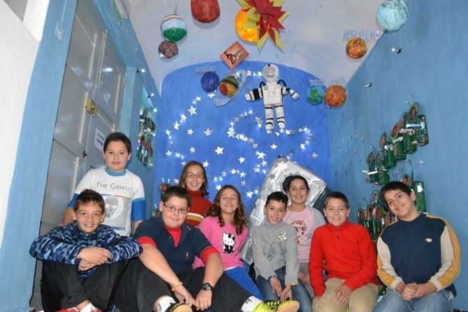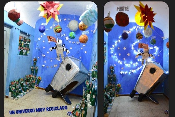 Toda la comunidad educativa: familias, alumnado y profesorado, ha estado trabajando durante el primer trimestre en el proyecto "Un universo muy reciclado". Para el cual, se han utilizado más de 400 envases de tetrabrick y plástico, además de cartón y otros materiales. La obra cuenta con una dimensión de 1,90 cm. repartidos en seis estructuras iluminadas: astronauta, sol, luna, cohete, planetas y 60 marcianos (que son los alumn@s del colegio) elaborados con diferentes técnicas plásticas.