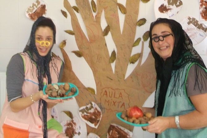 Del 11 al 15 se celebró la semana del otoño, con  la decoración de pasillos, vestíbulos con murales y trabajos realizados por los niños y niñas, relacionadas con el otoño, y el viernes 15 se degustaron  junto a las familias productos típicos de la temporada otoñal: castañas, nueces, dulce de membrillo, bizcocho de calabaza, granadas, etc… Las educadoras del grupo de 2-3 años nos sorprendieron con una  interpretación de la canción de “Mariquilla la castañera”.
