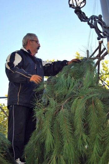 Durante la mañana del 6 de diciembre, todos arrimaron el hombro para poner en pie este árbol y, con ello, proclamar que Guadiana está celebrando ya la Navidad.