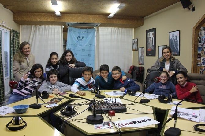 Alumnos del Colegio Santo Tomás de Aquino junto a sus tutoras estuvieron en los estudios de esRadio Montijo grabando un teatro en inglés que los niños representarán en la fiesta de Navidad del Centro.