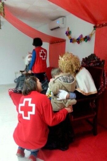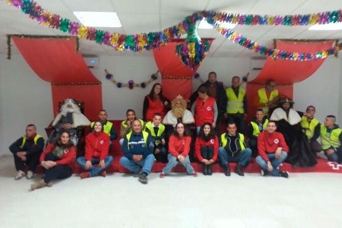 Los Reyes Magos visitaron la Asamblea Local de Cruz Roja Española en Montijo donde, junto con los voluntarios, entregaron los juguetes a los niños.