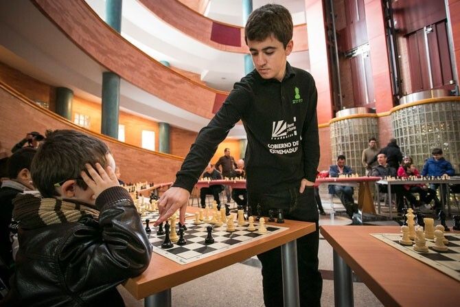 El joven ajedrecista leonés Santos Latasa vence a veinticinco aficonados de exhibición en Mérida