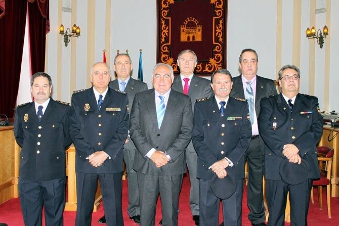 El alcalde Pedro Acedo, ha recibido esta mañana en su despacho a siete agentes de Policía Nacional que se han jubilado el año pasado y a los que ha entregado una insignia de la ciudad en reconocimiento a los servicios prestados.