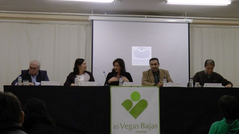 Miembros de la Asamblea de Extremadura participaron en una conferencia coloquio en el IES Vegas Bajas