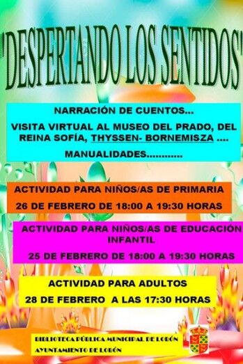 En el mes de enero se inició el nuevo proyecto de fomento de la lectura que se desarrollará en el 2014 en la Biblioteca Pública Municipal de Lobón “Despertando los sentidos”, cuyo principal objetivo es fomentar la lectura, y despertar los sentidos al arte, a la creatividad... descubriendo el fascinante mundo del arte.