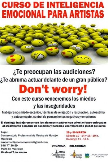 El curso se impartirá en el Conservatorio Profesional de Música de Montijo los días 29 y 30 de marzo. El sábado de 10 a 14 horas y de 16 a 19 horas. El domingo el horario del curso será de 11 a 14 horas.