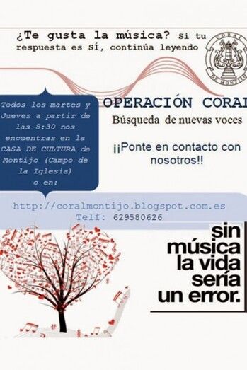 Quien tenga curiosidad puede acercarse a uno de nuestros ensayos en la "Casa de la Cultura" montijana los martes y jueves a partir de las 20:30 o ponerse en contacto en el teléfono 629580626 o en el e-mail que encontrará en nuestro blog: http://coralmontijo.blogspot.com
