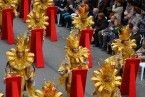 El espectacular traje dorado de “Vas como quieres” estaba inspirado en el Rey Midas. Como complemento portaban un espejo de cuerpo entero se servía de apoyo en la coreografía.