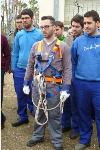4. Prácticas de trabajos eléctricos en altura, en el aula externa Alonso Cabo del IES Extremadura.