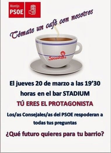 El encuentro será en el Bar Stadium a las 19:30 horas. El PSOE invita a todos los vecinos a acercarse para resolver sus dudas y hablar sobre el futuro del barrio.