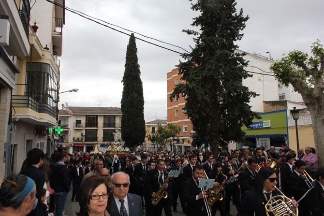 Como novedad, este año, el Encuentro del Domingo de Resurrección se realizó en la propia Plaza de España, dando más espacio tanto a la propia procesión como a la gente que asistió a verla.