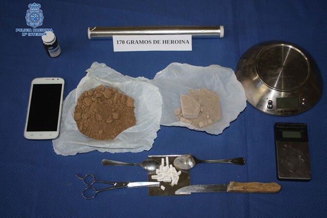 Así, con las autorizaciones judiciales preceptivas, la tarde del pasado 30 de abril, los agentes policiales practicaron dos registros domiciliarios simultáneos, en las viviendas mencionadas, procediendo a la detención de tres personas y a la intervención de 170 gramos de heroína, 24 pastillas de ansiolíticos, dos básculas de precisión y útiles para la venta al por menor y consumo de esta sustancia estupefaciente.