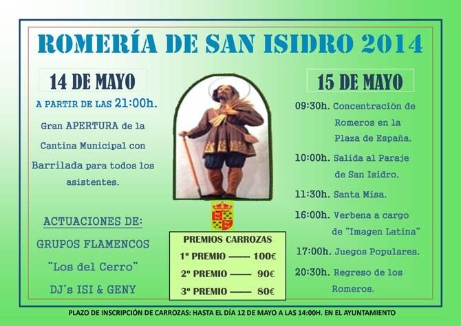 El 15 de mayo serán las actividades de la propia romería,. A las 9:30 empieza la jornada con concentración de romeros en la Plaza de España y salida al Paraje de San Isidro.