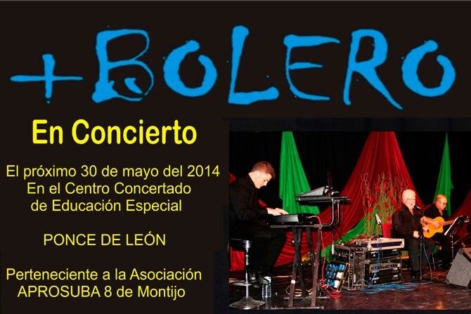 El 30 de mayo el grupo + Bolero actuará en el Centro Concertado de Educación Especial Ponce de León, Aprosuba 8, de Montijo. Será a las 12:00 horas con motivo del día del centro.