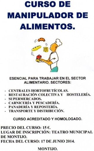 El Ayuntamiento de Montijo organiza el 17 de junio un curso de Manipulador de Alimentos, esencial para trabajar en centrales hortofrutícolas, restauración colectiva y hostelería, supermercados, carnicería y pescadería, panadería y repostería, transporte y distribución, entre otros sectores.