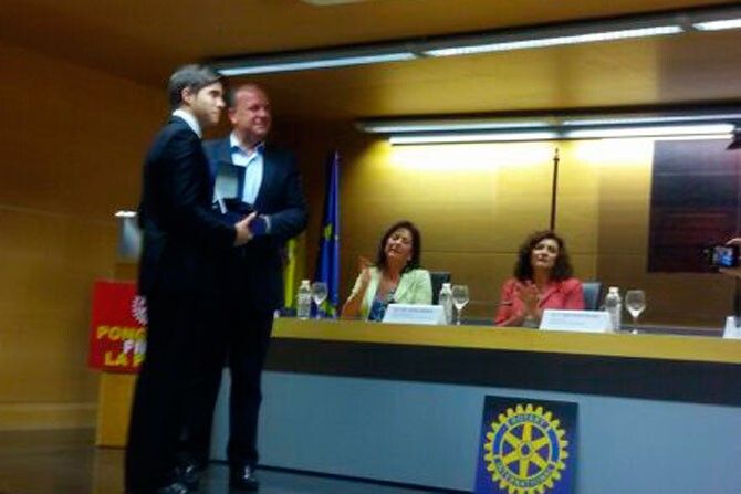 A continuación, la secretaria del jurado, Dña. Nieves Cruz Barrientos, procedió a leer el acta de concesión del premio “Protagonistas del mañana”, y nombrar al ganador del mismo, recayendo en la persona de D. Miguel Romero Sanchez, alumno del Colegio María Auxiliadora de Mérida. El premio, consistente en participar en un campamento internacional gestionado por Rotary Internacional, fue entregado a Miguel de manos del Presidente del Gobierno de Extremadura, D. José Antonio Monago. El premiado agradeció dicha distinción y leyó una síntesis de “su ideal”, que se podría resumir en estas palabras: «Soy un aprendiz de la vida, consciente de lo poco que sé y de lo mucho que me queda por aprender».