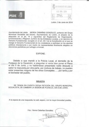 Con motivo de la carta enviada a crónicas de un pueblo, por uno de los concejales que actualmente tiene el gobierno local, solo y únicamente decir que me remito a las pruebas que aporto con dichos documentos, también quiero hacer constancia que mi pueblo y su gente, tanto a mí, como a mis compañeros en la oposición, nos interesan y mucho, la prueba de todo ello es que llevamos más de tres años, trabajando sin ánimo de lucro, reparto de boletines informativos, asistencia a plenos, atendiendo a nuestros vecinos, le pese a quién le pese... Cumplimos con nuestro trabajo de concejal.
