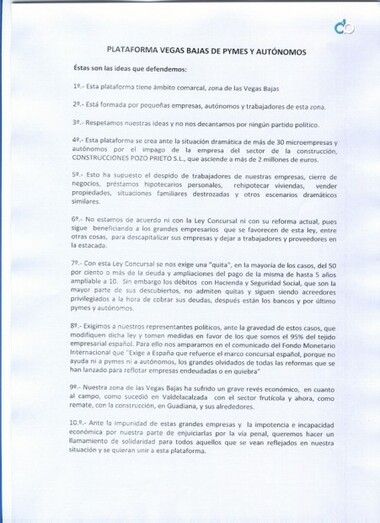 La Plataforma Vegas Bajas de Pymes y Autónomos ha informado oficialmente de su creación a varios ayuntamientos de nuestra comarca, incluyendo el de Guadiana del Caudillo