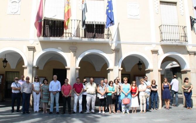 A las 12 en punto del mediodía se han congregado el alcalde Alfonso Pantoja, acompañado de miembros de la Corporación Municipal integrada por los concejales del PP, PSOE e IU, así como, otros trabajadores del Ayuntamiento y vecinos que han querido sumarse a este acto.