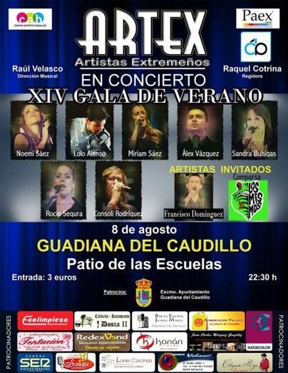 Sobre el escenario estarán Noemí Sáez, Lolo Alonso, Miriam Sáez, Álex Vázquez, Sandra Buhigas, Rocío Segura, Consoli Rodríguez y, además, la participación del artista local Francisco Dominguez y de algunos miembros de la comparsa Los Mismos con su espectáculo de percusión. Raquel Cotrina será la regidora de una gala con dirección musical de Raúl Velasco.