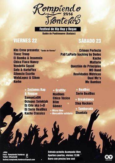 El viernes 22 de agosto y sábado 23 tendrá lugar en el Badén de Pueblonuevo del Guadiana el festival de Hip Hop y Regae “Rompiendo Fronteras 2014”.
