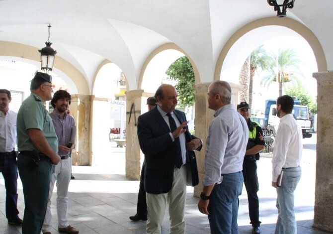 El delegado del Gobierno ha asistido a la celebración de la Junta Local de Seguridad celebrada en Montijo, donde ha comparecido junto al alcalde, Alfonso Pantoja.