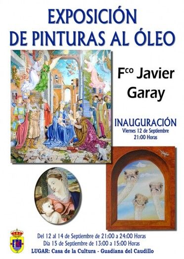 Del 12 al 15 de septiembre, tendremos en la Casa de la Cultura una exposición de pinturas al óleo de Francisco Javier Garay, de Guadiana.