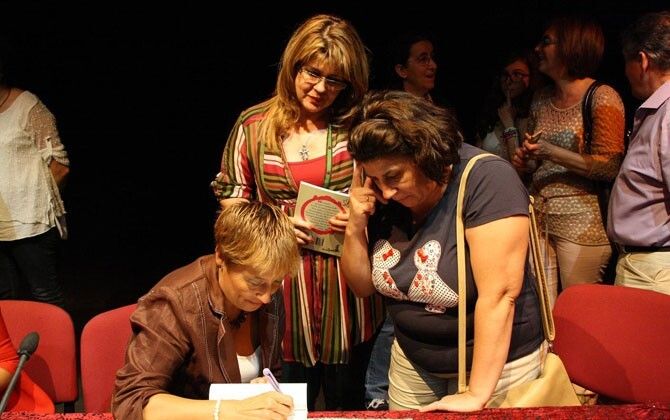 a la autora en la mesa, Ana Gragera Macías, periodista, Sonia Ruiz Navas, psicóloga y