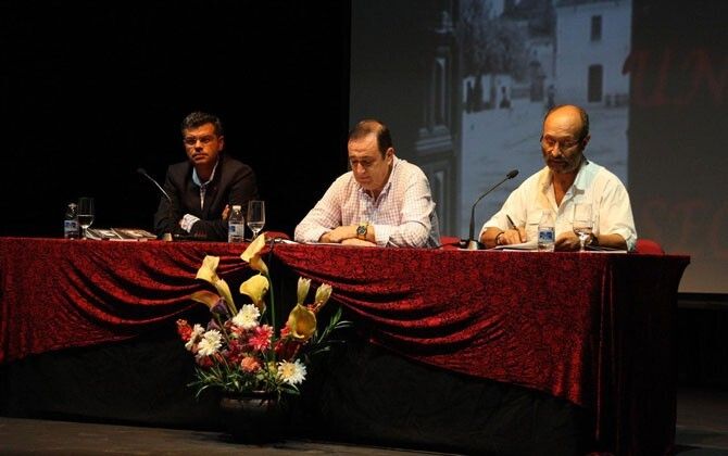 Juan Monzú, un hombre siempre  atraído por la historia, toma sin embargo el campo anguloso de la poesía desde los 15 años, consiguiendo varios premios en distintos certámenes. Sin embargo, la historia burbujea en su interior y, compaginando la investigación y la escritura con el trabajo, termina en 2006 su primera novela histórica, ¡Salve Augusta!, y en 2012, una segunda novela histórica sobre el reino aftasí de Badajoz. Ahora, nos presenta este nuevo libro sobre la localidad donde hace un repaso sencillo sobre su origen, sus calles, sus apellidos, sus vivencias, su sociedad, su economía, sus gentes, sus creencias y sus costumbres, realizando una magnífica exposición sobre el tema que encantó a los muchos asistentes que acudieron al acto. En la mesa, acompañando al autor, el alcalde de la localidad, Juan Antonio González y el Concejal de Cultura, Teodoro Gracia.