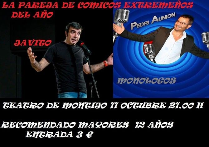 Los amantes de las risas podrán pasar un buen rato de la mano de Pedri Aunión y Javito, la pareja de cómicos extremeños del año, en el Teatro Municipal de Montijo.