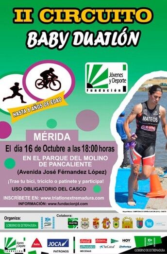 Mérida acogerá una de las fases del II Circuito Baby Duatlon que la Federación extremeña de Triatlón y la Fundación Jóvenes y Deportes organizan en distintas ciudades de la región.