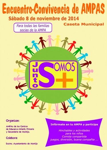Las AMPAS de los centros educacativos de Infantil, Primaria y Secundaria de Montijo celebrarán un Encuentro-Convivencia el próximo sábado 8 de noviembre a partir de las doce de la mañana en la Caseta Municipal.